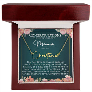 Our Mama Tiny Name Necklace is a personalized and sentimental piece of handwriting jewelry that celebrates the bond between a mother and child. Customized with the name of your child in delicate handwriting, this tiny name necklace is a beautiful and unique way to keep your loved ones close to your heart.